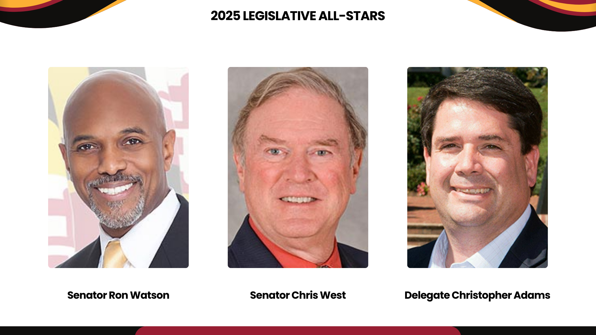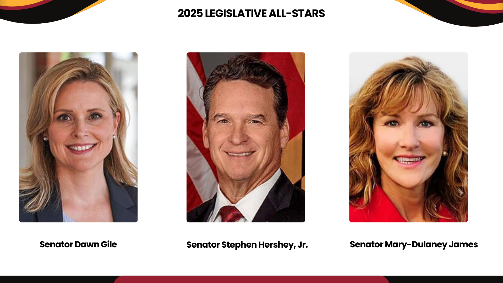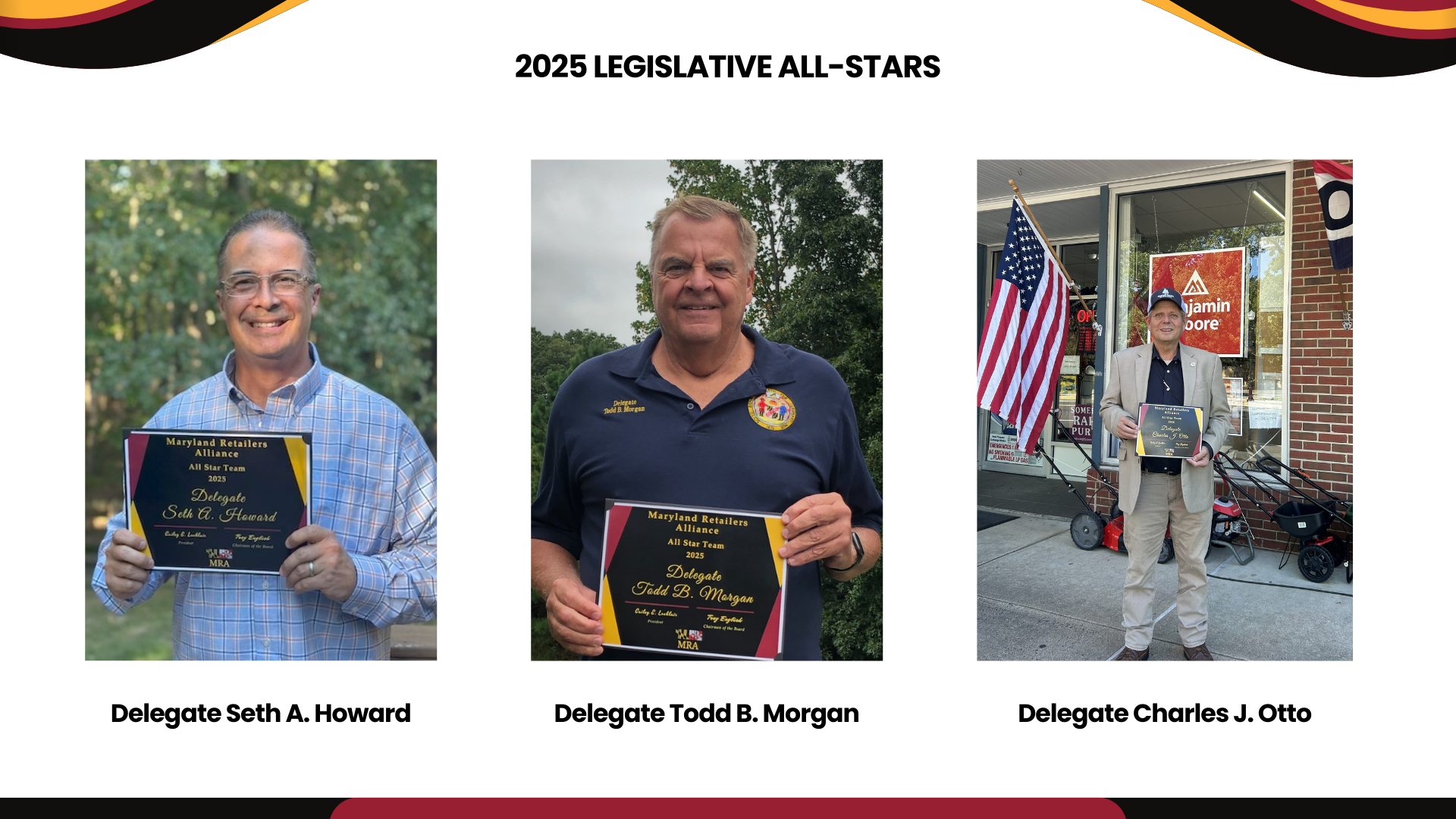 The MRA Legislator of the Year Award is presented annually to an elected official in recognition of their outstanding public leadership and support of the mission of the Maryland Retailers Association.