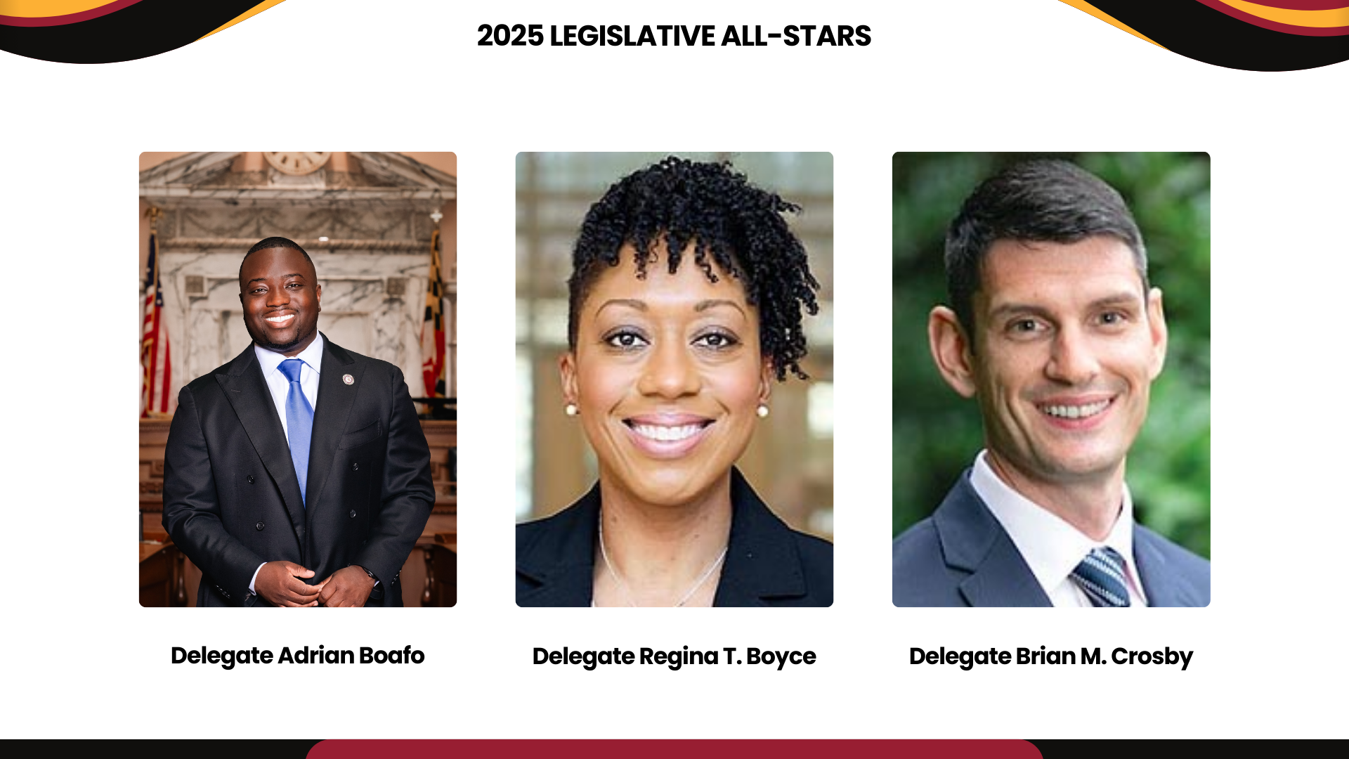 - 2016: Senator Robert A. Zirkin, Senator Wayne Norman, Delegate Sid Saab