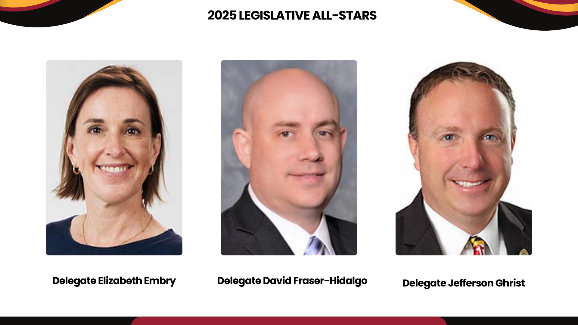 - 2017: Senator Steve Hershey, Delegate William (Bill) Folden