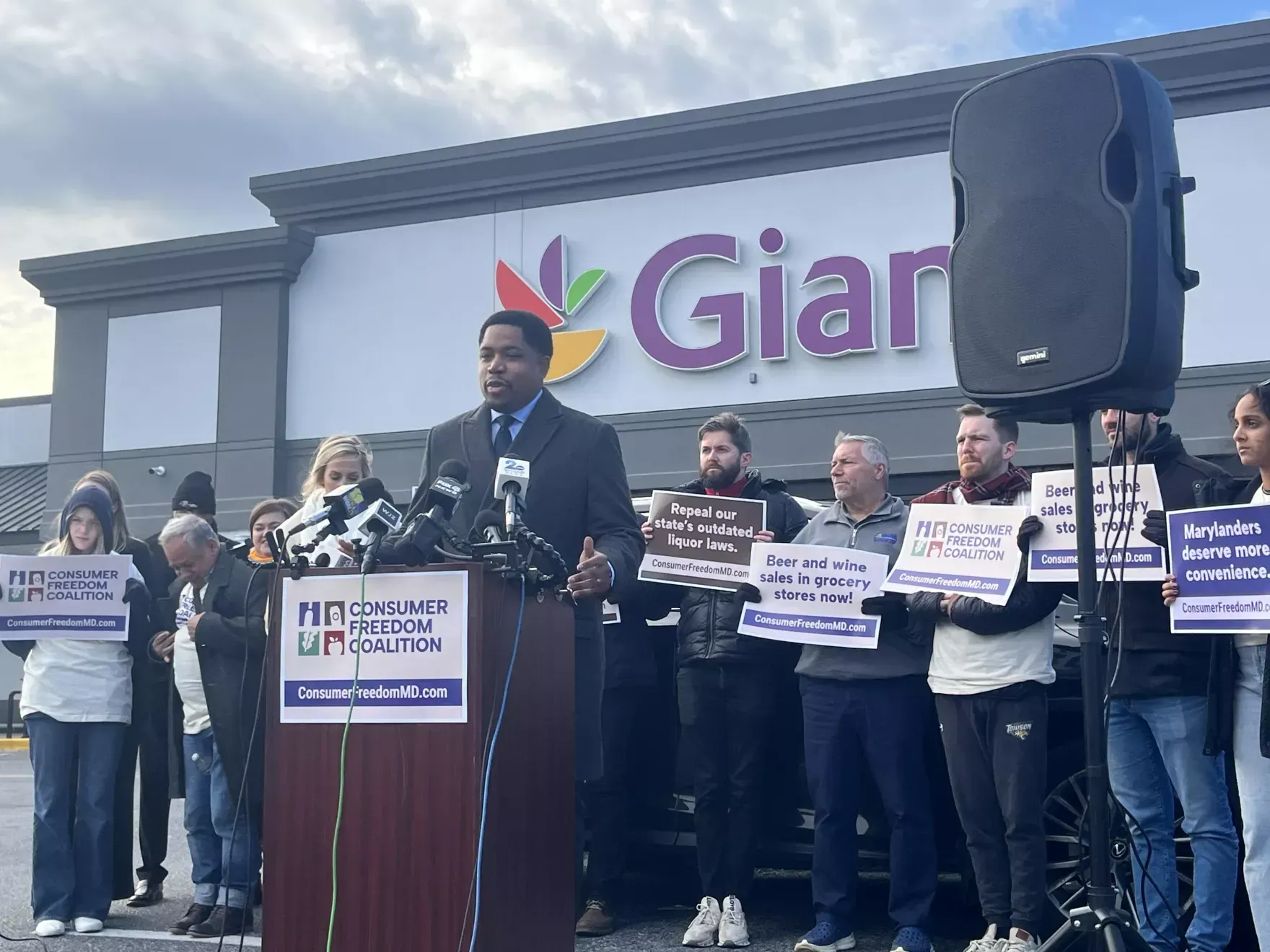 A coalition gathered outside a Giant Food store in Locust Point on Thursday afternoon to launch a campaign to allow beer and wine in grocery stores. Maryland Retailers Alliance President Cailey Locklair said Maryland is at a competitive disadvantage. “Residents who live near borders routinely cross state lines into Delaware, Pennsylvania, West Virginia and the District of Columbia,” Locklair said. Maryland state Del. Marlon Amprey is the sponsor of the Alcoholic Beverages Modernization Act , which would allow beer and wine to be sold in grocery stores. Amprey said he thinks about the single mom “who is shopping with two or three kids and wants to be able to buy an alcoholic beverage but has three kids with her and has to go to the grocery store and has soccer before that. It should be easy for that person to do a one stop shop.” Locklair added that what many people do not realize is that “grocery stores operate on extraordinarily thin profit margins, typically between 1% and 3%. Maryland is one of four states that do not allow alcohol sales in grocery stores. Click here to view the article on WBAL NewsRadio .